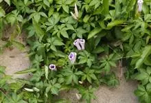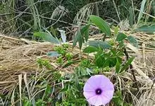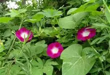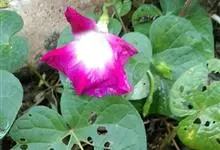五爪金龙 Sweet),旋花科番薯属多年生缠绕草本植物。茎细长,有细棱;叶片为掌状;花冠紫红色、紫色或淡红色、偶有白色,漏斗状;蒴果近球形。花期5~12月。五爪金龙的叶子类似掌状,有5至7个裂痕,…全部>>