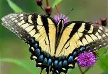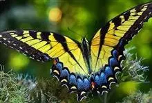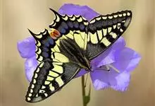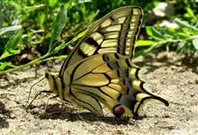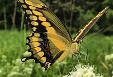 金凤蝶,是鳞翅目凤蝶科凤蝶属动物。金凤蝶为中型凤蝶,翅展70-84毫米,翅背面底色黑褐色,翅脉黑色,翅室具黄斑;前翅背面基部呈暗黄色,亚外缘为黑色,内具一列小黄斑;后翅背面亚外缘区具黑宽边,…全部>>