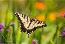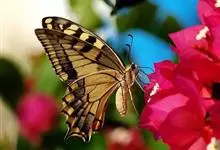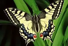 金凤蝶,是鳞翅目凤蝶科凤蝶属动物。金凤蝶为中型凤蝶,翅展70-84毫米,翅背面底色黑褐色,翅脉黑色,翅室具黄斑;前翅背面基部呈暗黄色,亚外缘为黑色,内具一列小黄斑;后翅背面亚外缘区具黑宽边,…全部>>