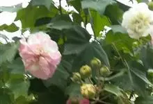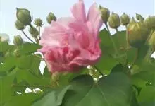 木芙蓉,锦葵科木槿属落叶灌木或小乔木。小枝上有细绒毛;叶片为卵状心形,托叶为披针形,常早落;花单生,花萼为钟形,花冠初为白色或淡红色,后逐渐变为深红色;果实为扁球形,有淡黄色的毛附着。花期8到10月。…全部>>
