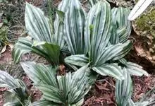 银带虾脊兰:植株无明显的根状茎。假鳞茎粗短,近圆锥形,粗约1.5厘米,具2-3枚鞘和3-7枚在花期展开的叶。叶上面深绿色,带5-6条银灰色的条带,椭圆形或卵状披针形。花葶从叶丛中央抽出,密被短毛;总…全部>>
