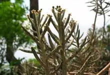 落地生根属Bryophyllum pinnatum Oken,景天科植物,肉质草本,半灌木或灌木,茎常直立。花大形,常下垂,颜色鲜艳;花为4基数;全属约20种,生长在非洲马达加斯加。全部>>