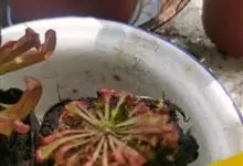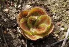 茅膏菜茅膏菜科茅膏菜属多年生草本植物,高32厘米。鳞茎状球茎紫色地上常直无毛,茎顶多分枝;基生叶密集成近一轮,叶片半月形;聚伞花序生于枝顶,白色或红色,种子椭圆形;花果期6-9月。茅膏菜为变种,…全部>>