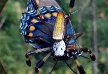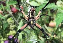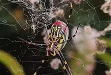 棒络新妇,是蜘蛛目肖蛸科络新妇属节肢动物。雄蛛体长约6毫米,背甲褐色,具黑色纵斑;步足黑色,有橙色环纹;腹部筒形、褐色,有黄斑;雌蛛体长约21毫米,背甲黑色,有大量银色长毛;触肢黄色,步足黑色,…全部>>