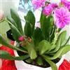 露薇花是水卷耳科露薇花属肉质草本花卉植物。其根肉质,基生莲座叶丛,直径9-11厘米,叶倒卵状匙形,长5-8厘米,全缘或波状。圆锥花序顶生,高约25厘米,花的颜色有白色、橙红、粉色或橙黄,…全部>>