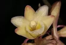 球花石斛,是兰科石斛属的多年生附生草本。茎直立或斜立,圆柱形,粗壮,基部收狭为细圆柱形,不分枝,具数节;叶互生于茎的上端,革质,长圆形或长圆状披针形;总状花序侧生于带有叶的老茎上端,下垂,花密生,黄色,…全部>>