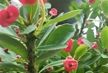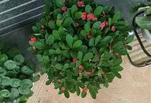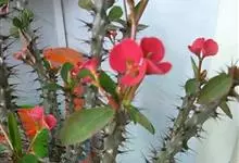 虎刺梅:别称铁海棠,是蔓生灌木植物。茎多分枝,长60-100厘米,直径5-10毫米,具纵棱,密生硬而尖的锥状刺,刺长1-1.5厘米,直径0.5-1.0 毫米,常呈3-5列排列于棱脊上,呈旋转。叶互生…全部>>