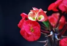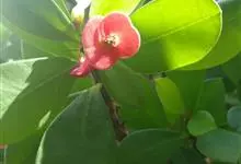 铁海棠为大戟科大戟属蔓生灌木植物;茎多分枝,具纵棱,呈旋转状;叶互生,通常集中于嫩枝上;每个花序基部边缘具微小的红色尖头;苞叶先端圆且具小尖头,无柄,上面鲜红色,下面淡红色;苞片丝状;子房光滑无毛,…全部>>