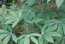 木薯,为大戟科木薯属的一种直立灌木,又名木番薯、树薯。木薯高1.5-3米;块根圆柱状。叶纸质,轮廓近圆形;裂片倒披针形至狭椭圆形;托叶三角状披针形。圆锥花序顶生或腋生,花萼带紫红色且有白粉霜。…全部>>