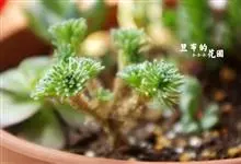 小松绿是景天科景天属植物,多肉植物,植株低矮,多分枝,株型近似球状,新枝浅绿色,以后逐渐转为灰白色,肉质叶近似针状。枝条下部的老叶容易干枯,贴在枝干上,形成类似松树皮般的龟裂,数月才脱落,…全部>>