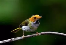 棕脸鹟莺:体长10厘米,是一种色彩亮丽而有特色的莺鸟。头栗色,具黑色侧冠纹。上体绿,腰黄色。下体白,颏及喉杂黑色点斑,上胸沾黄。与栗头鹟莺的区别在头侧栗色,白色眼圈不显著且无翼斑。…全部>>