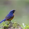 棕腹蓝仙鹟,Niltava vivida,鹟科仙鹟属的一种小型鸣禽,善在空中飞捕昆虫,中等体型18厘米,上体蓝,下体棕色,具黑色眼罩,胸橘黄渐变成臀部的皮黄色。国内分布于四川、云南、西藏和台湾等地。…全部>>