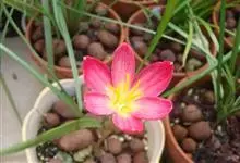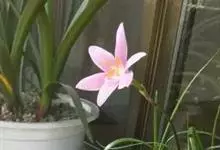 小韭兰学名韭菜莲又名风雨花、菖蒲莲、红玉帘和旱水仙,多年生草本,鳞茎卵球形,基生叶常数枚簇生,线形,扁平,花单生于花茎顶端,下有佛焰苞状总苞,花玫瑰红色或粉红色,蒴果近球形,种子黑色,花期夏秋。韭莲…全部>>