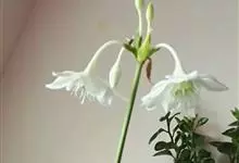 南美水仙是石蒜科、南美水仙属的多年生草本植物,株高约80厘米;叶基生,椭圆形,浓绿色;花亭肉质。顶生伞形花序,着花3到6朵,花冠筒圆柱形,中央生有一个副花冠,花瓣开展呈星状。花为纯白色,…全部>>