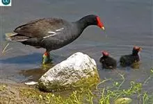 黑水鸡:是鹤形目、秧鸡科的鸟类,共有12个亚种。中型涉禽,体长24-35厘米。嘴长度适中,鼻孔狭长;头具额甲,后缘圆钝;嘴和额甲色彩鲜艳。翅圆形,第2枚初级飞羽最长,或第2枚和第3枚初级飞羽等长,…全部>>