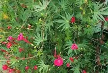 葵叶茑萝 Ooststr.)是旋花科、茑萝属植物,一年生草本,几无毛;茎缠绕,多分枝,无毛。叶掌状深裂,长5-10厘米。聚伞花序腋生,1-3花,总花梗粗壮,常较叶柄长,长达10-20厘米。蒴果圆锥形,…全部>>