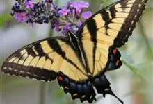金凤蝶,是鳞翅目凤蝶科凤蝶属动物。金凤蝶为中型凤蝶,翅展70-84毫米,翅背面底色黑褐色,翅脉黑色,翅室具黄斑;前翅背面基部呈暗黄色,亚外缘为黑色,内具一列小黄斑;后翅背面亚外缘区具黑宽边,…全部>>