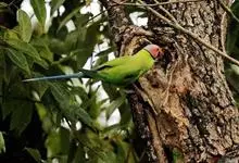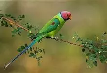 紫红头鹦鹉是鹦形目鹦鹉科的鸟类。鸟体为绿色,头部中间为红色,下颏下方延伸到脸颊下方,环绕整个颈部有一条黑色的环状羽毛,并连接一条蓝绿色的条状羽毛。…全部>>