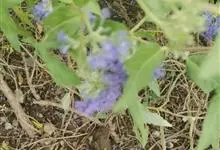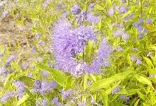 蒙古莸:为唇形科莸属落叶小灌木。常自基部即分枝,嫩枝紫褐色,圆柱形,有毛,老枝毛渐脱落。叶片厚纸质,线状披针形或线状长圆形,背面密生灰白色绒毛。聚伞花序腋生,无苞片和小苞片,花萼钟状,花冠蓝紫色。…全部>>