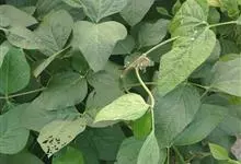 大豆 Merr.)是豆科大豆属的一年生草本植物,高30-90厘米。茎粗壮,直立,密被褐色长硬毛。叶通常具3小叶;托叶具脉纹,被黄色柔毛;叶柄长2-20厘米;小叶宽卵形,纸质;总状花序短的少花,…全部>>