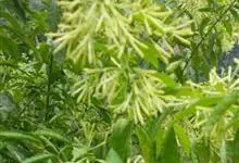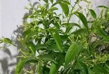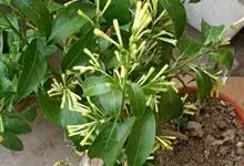 夜香树是茄科、夜香树属直立或近攀援状灌木。枝条细长而下垂。叶有短柄,叶片矩圆状卵形或矩圆状披针形,全缘,顶端渐尖,基部近圆形或宽楔形,两面秃净而发亮,有6-7对侧脉。伞房式聚伞花序,腋生或顶生,…全部>>