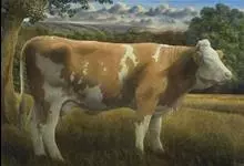 西门塔尔牛是偶蹄目牛科牛属哺乳动物。 体躯长,呈圆筒状,肌肉丰满;头较长,面宽,颈长中等,角较细而向外上方弯曲,尖端稍向上;前躯较后躯发育好,胸深,尻宽平,四肢结实,大腿肌肉发达,乳房发育好。…全部>>