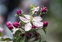 湖北海棠 Rehder)是蔷薇科苹果属植物,乔木,高达8米;小枝最初有短柔毛,不久脱落,老枝紫色至紫褐色;冬芽卵形,先端急尖,鳞片边缘有疏生短柔毛,暗紫色。果实椭圆形或近球形,直径约1厘米,…全部>>