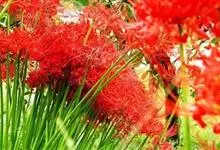 石蒜[学名:Lycoris radiata Herb.],是石蒜科石蒜属的多年生草本植物,别名彼岸花、红花石蒜、死人花、蟑螂花、龙爪花等。石蒜的叶狭带状,中间有粉绿色带,秋季出叶。伞形花序,花鲜红色。…全部>>
