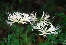 陕西石蒜草本,地生。鳞茎近球形;叶带状;伞形花序,有花5-8朵,白色,花被裂片腹面散生少数淡红色条纹,背面具红色中肋,反卷和微皱缩;雄蕊比花被短,花丝淡紫红色;雌蕊略伸出于花被外,花柱顶端紫红色。…全部>>
