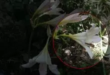 陕西石蒜草本,地生。鳞茎近球形;叶带状;伞形花序,有花5-8朵,白色,花被裂片腹面散生少数淡红色条纹,背面具红色中肋,反卷和微皱缩;雄蕊比花被短,花丝淡紫红色;雌蕊略伸出于花被外,花柱顶端紫红色。…全部>>
