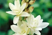 晚香玉是石蒜科、晚香玉属多年生草本植物。晚香玉茎直立,不分枝;基生叶片簇生,线形,顶端尖,深绿色,向上渐小呈苞片状;穗状花序顶生,花乳白色,浓香,长圆状披针形;蒴果卵球形;种子多数,稍扁;花期7-9月。…全部>>