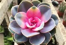 紫珍珠是景天科石莲花属的多年生肉质草本植物。植株中小型;叶片肉质,匙形,呈莲座状紧密排列;叶片粉紫色,叶缘呈粉白色,光照充足时颜色亮丽,不足时叶色会呈现深绿色或灰绿色,叶面光滑,被轻微白粉,…全部>>