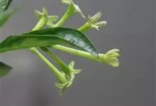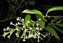 夜香树是茄科、夜香树属直立或近攀援状灌木。枝条细长而下垂。叶有短柄,叶片矩圆状卵形或矩圆状披针形,全缘,顶端渐尖,基部近圆形或宽楔形,两面秃净而发亮,有6-7对侧脉。伞房式聚伞花序,腋生或顶生,…全部>>