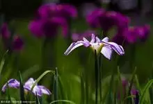 花菖蒲:是玉蝉花的变种。多年生宿根挺水型水生花卉。根状茎短而粗,须根多并有纤维状枯叶梢,叶基生,线形,叶中脉凸起,两侧脉较平整。花葶直立并伴有退化叶1-3枚。花大直径可达15厘米。外轮三片花瓣呈椭圆…全部>>