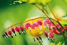 荷包牡丹 Fukuhara),是罂粟科荷包牡丹属的多年生草本植物,株高30-60厘米,具肉质根状茎;茎直立呈圆柱形;叶二回三出全裂,状似牡丹叶;总状花序顶生,基部为心形,花瓣紫红色至粉红色,稀白色,…全部>>