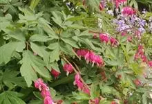 荷包牡丹 Fukuhara),是罂粟科荷包牡丹属的多年生草本植物,株高30-60厘米,具肉质根状茎;茎直立呈圆柱形;叶二回三出全裂,状似牡丹叶;总状花序顶生,基部为心形,花瓣紫红色至粉红色,稀白色,…全部>>
