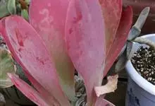 唐印为景天科伽蓝菜属的多年生肉质草本植物。植株中型,株高50厘米,宽20厘米,多分枝;叶片肉质,对生,卵形,全缘,先端钝圆,叶片淡绿色至灰绿色,表面被有厚厚的白粉,光照充足时,叶缘呈红色;圆锥花序,…全部>>