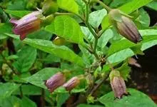 颠茄是茄科、颠茄属多年生草本植物。高可达2米。根粗壮,圆柱形。茎下部带紫色,上部叉状分枝,嫩枝绿色,多腺毛,叶互生或双生,叶柄幼时生腺毛;叶片卵形、卵状椭圆形或椭圆形,基部楔形并下延到叶柄,…全部>>