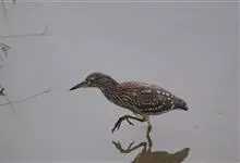 夜鹭是中型涉禽,体长46-60厘米。体较粗胖,颈较短;嘴尖细,微向下曲,黑色;胫裸出部分较少,脚和趾黄色;头顶至背黑绿色而具金属光泽;上体余部灰色;下体白色;枕部披有2-3枚长带状白色饰羽,下垂至背上,…全部>>
