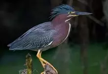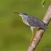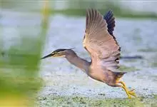 绿鹭:是鹳形目鹭科绿鹭属鸟类。体型小,头顶黑,枕冠亦黑色,上体蝉灰绿色,下体两侧银灰色;前额至后枕及冠羽墨绿色,眼后有一白斑,颊纹黑色;颚纹白色,后颈、颈侧和体侧烟灰色;背部披灰绿色矛状长羽,…全部>>