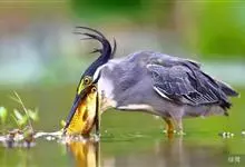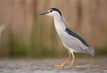 夜鹭是中型涉禽,体长46-60厘米。体较粗胖,颈较短;嘴尖细,微向下曲,黑色;胫裸出部分较少,脚和趾黄色;头顶至背黑绿色而具金属光泽;上体余部灰色;下体白色;枕部披有2-3枚长带状白色饰羽,下垂至背上,…全部>>