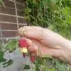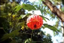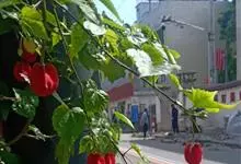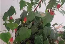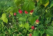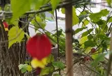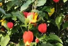 红萼苘麻是锦葵科、苘麻属常绿软木质灌木,叶绿色,长5-10厘米,心形,叶端尖,叶缘有钝锯齿,有时分裂,有细细的叶柄;叶互生,掌状叶脉;花单生于叶腋,具长梗,下垂;花萼红色,半套着大约4厘米长的花瓣,…全部>>