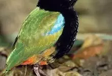 绿胸八色鸫:是雀形目八色鸫科的鸟类,共有12个亚种。体长为16-18厘米,体重65-69克。体型圆胖,尾短,腿长。头黑,上体绿色,两翼深色而具白色斑纹,头顶至后枕深褐,胸及腹部苹果绿,臀亮红。…全部>>