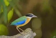 蓝翅八色鸫是雀形目八色鸫科的鸟类。体长17-20厘米,体重类约48-70克,体型圆胖,尾短,腿长,以身体具有红、绿、蓝、白、黑、黄、褐、栗等鲜艳夺目,丰富艳丽的色彩而得名,是很有观赏价值的鸟类。主要…全部>>