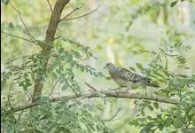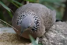 珠颈斑鸠,别名花斑鸠、珍珠鸠、花脖斑鸠、鸪鹪,是鸠鸽科副斑鸠属鸟类。体型中等,体长27~34cm,体重120~205g,雌鸟和雄鸟羽色相似,但雌鸟不如雄鸟羽色亮泽。珠颈斑鸠前额至头顶羽色稍淡,…全部>>