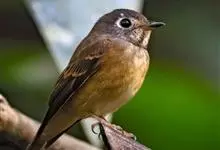 棕尾褐鹟:体重9-16克;体长109-122毫米,是一种体型略小的红褐色鹟。眼圈皮黄,喉块白,头石板灰色,背褐,腰棕色,下体白,胸具褐色横斑,两胁及尾下覆羽棕色。通常具白色的半颈环。…全部>>