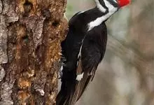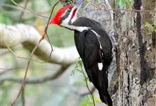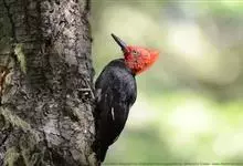 白腹黑啄木鸟,是啄木鸟科、黑啄木鸟属的中型鸟类,体长43-46厘米,头顶具长的红色羽冠,颚纹亦为红色,其余头、颈、胸和上体黑色,腰和腹白色,飞翔时白色腋羽和翅下覆羽亦明显可见。雌鸟头顶黑色,…全部>>