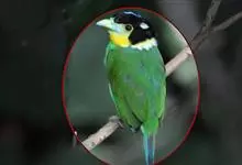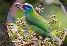 黑眉拟啄木鸟,为须䴕科、拟啄木鸟属的小型鸟类,体长20-25厘米,外形和金喉拟啄木鸟非常相似,但具粗著的黑色眉纹,头侧和耳覆羽以及下喉蓝色而不为银灰色,前颈两侧各有一块鲜红色斑。全部>>