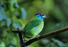 蓝喉拟啄木鸟,是须鴷科、拟啄木鸟属的鸟类。蓝喉拟啄木鸟为小型鸟类,体长20-23厘米。前额至头顶鲜红色,其上有一宽阔的黑色横带,将此红色分为前后二块;头侧、颏、喉蓝色,下喉两侧各具一红色点斑。…全部>>