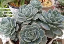 蓝石莲是景天科、拟石莲花属的多肉植物。茎部粗壮,成熟植株茎部木质化。叶片莲座型密集排列,株径不会很大,叶片相对较薄,常年绿色,表面布有白色粉末,中部凹陷,呈倒水滴状。叶尖较尖,叶缘光滑无褶皱,…全部>>